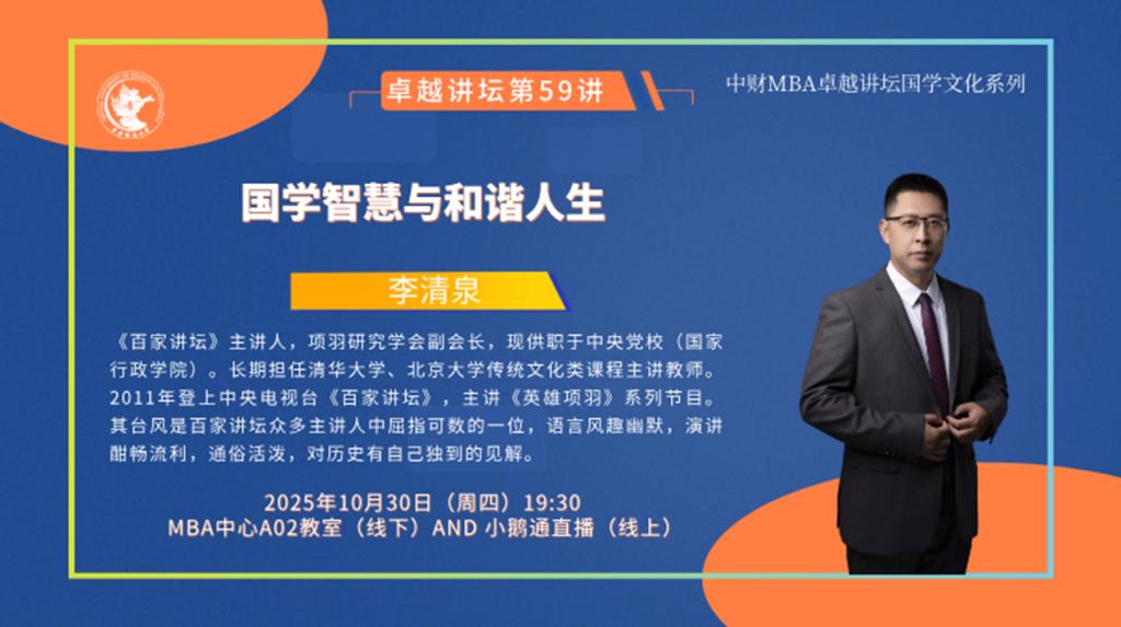 讲座方式:线下——MBA教育中心A02教室(线下参加需扫码报名)